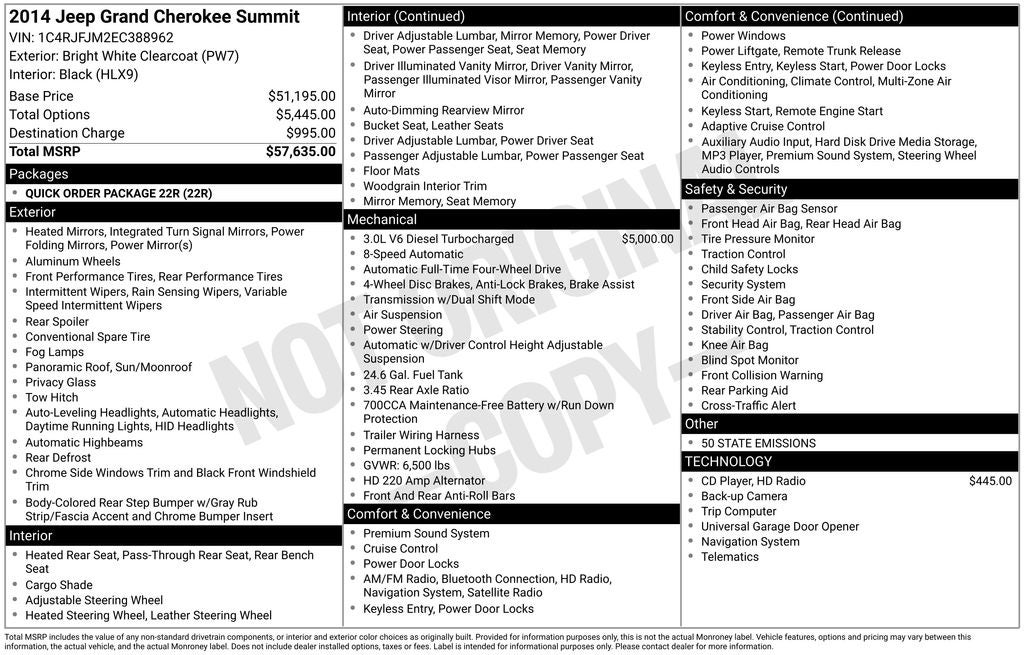 This 2014 Jeep Grand Cherokee Summit is a true standout in our inventory. Boasting a powerful 3.0L V6 Turbodiesel engine, this 4WD SUV delivers an exceptional blend of performance and efficiency, with an impressive 21 city/28 highway MPG.