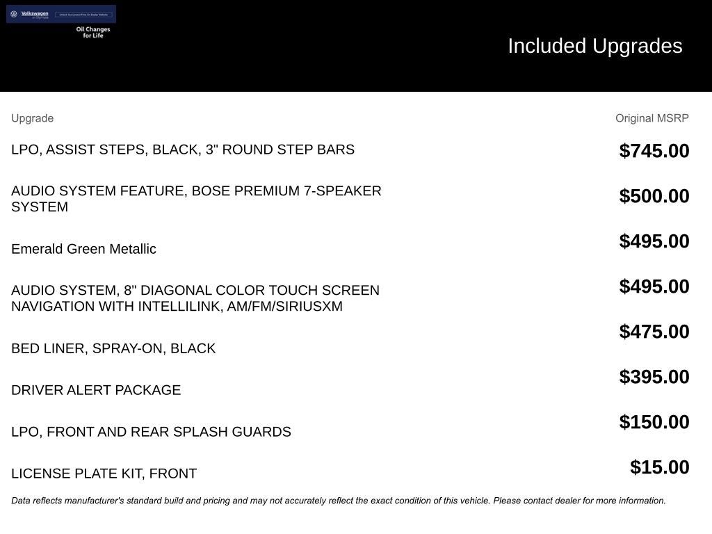 Dealer Installed Accessories do not include any additional optional accessories customer may choose to add to vehicle.