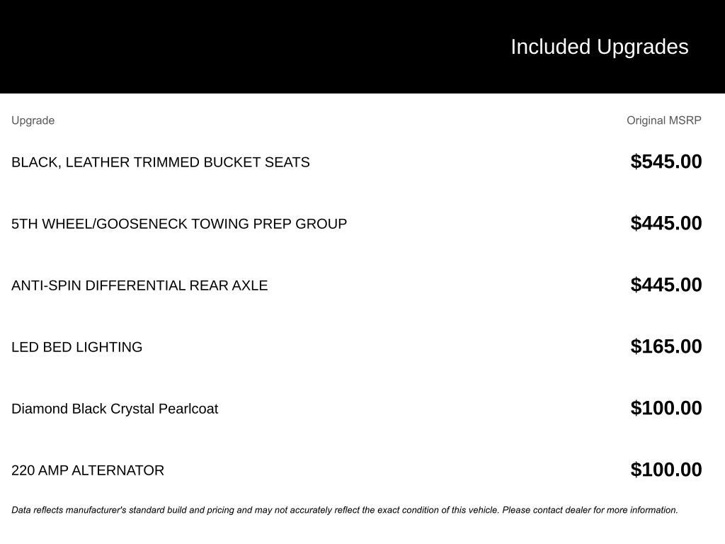 Dealer Installed Accessories do not include any additional optional accessories customer may choose to add to vehicle.