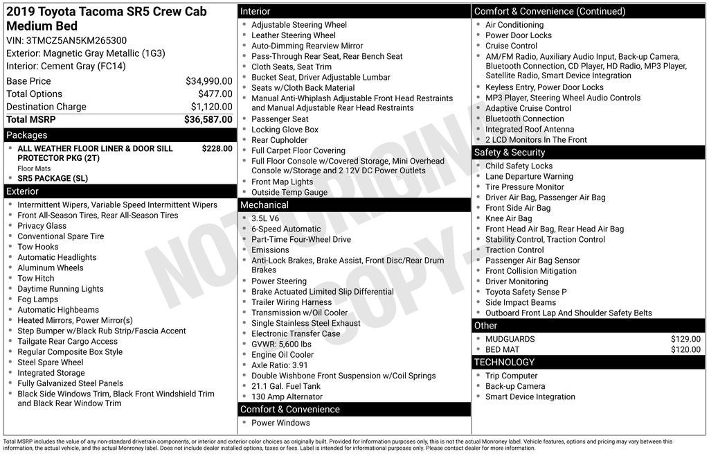 - Vehicle Name: Toyota Tacoma 4WD