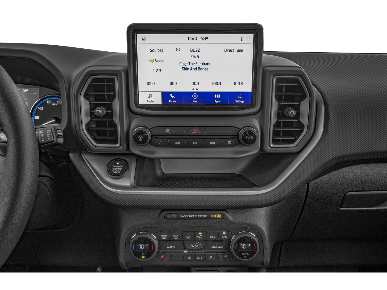 The Outer Banks package elevates this Bronco Sport with premium features that elevate your driving experience. Enjoy the exceptional sound quality of the Bang & Olufsen audio system, the convenience of wireless charging, and the expansive views from the power moonroof. The Ford Co-Pilot360 Assist+ suite of advanced safety and driver-assist technologies, including Evasive Steering Assist and Intelligent Adaptive Cruise Control, provide added peace of mind on the road.