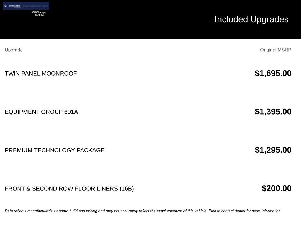 Dealer Installed Accessories do not include any additional optional accessories customer may choose to add to vehicle.
