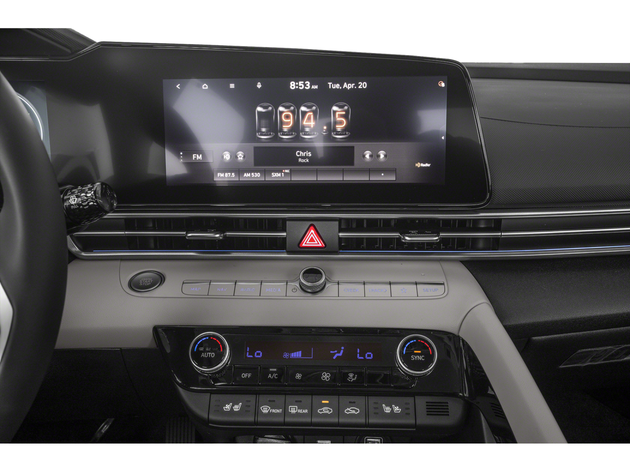 - Radio: AM/FM/HD/SiriusXM Display Audio -inc: 10.25" high resolution touch screen display, navigation, Bose premium audio including 8 speakers, center channel and subwoofer, Blue Link connected car services, SirusXM data services: NavTraffic, NavWeather and Sports and Stocks w/3-month trial, Apple CarPlay & Android Auto, Bluetooth hands-free phone system w/voice recognition, dual USB ports, dynamic voice recognition, wireless device charging, speed-sensitive automatic volume control and Blue Link guidance package (3-year complimentary trial)