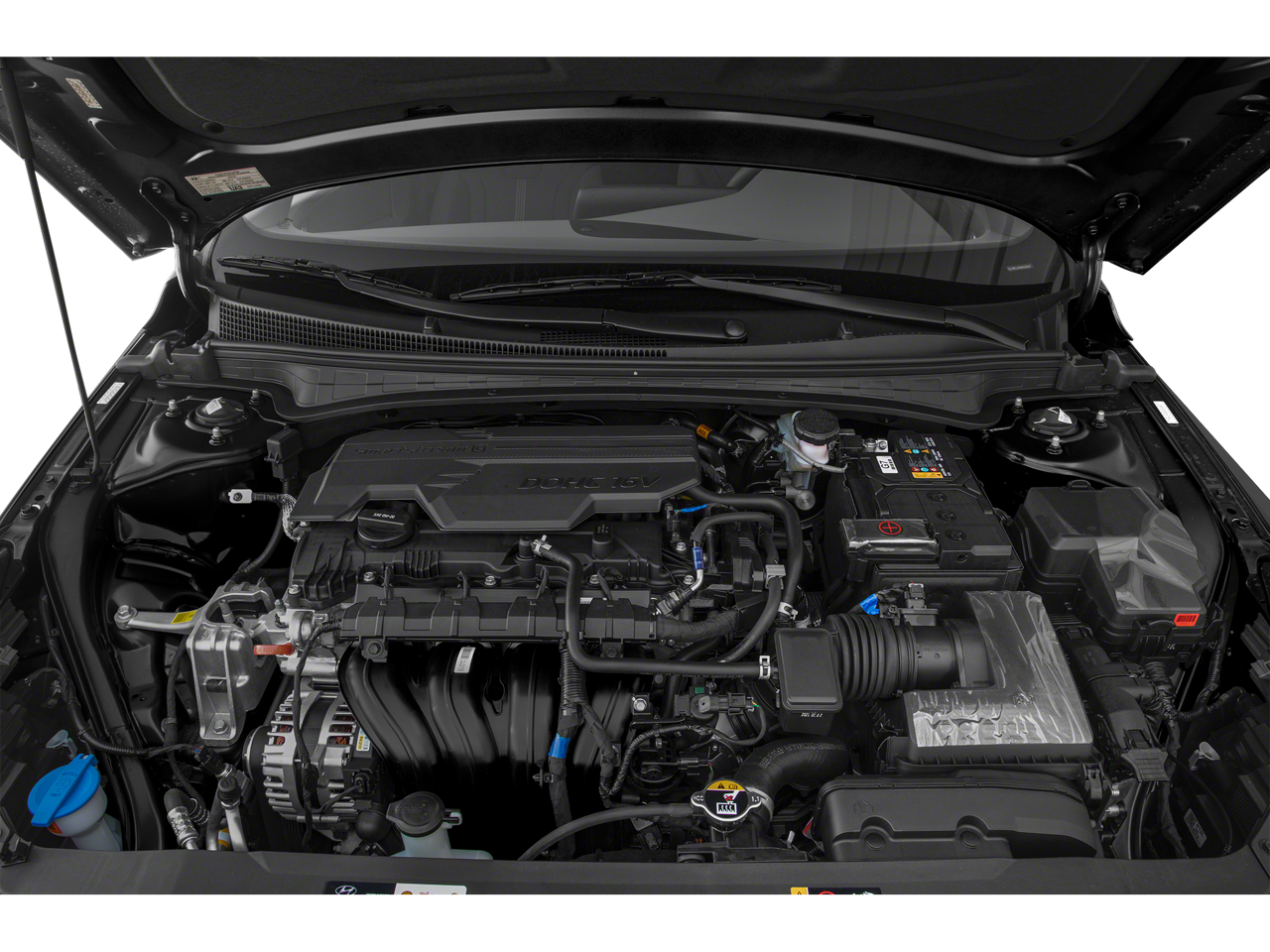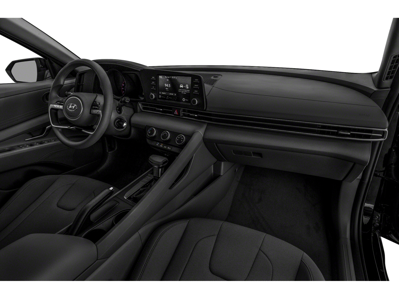 The Elantra's sleek and modern design is complemented by its 15 alloy wheels, body-color bumpers, and a range of exterior color options to suit your personal style. Step inside the cabin, and you'll be greeted by the comfortable cloth seating, a driver's vanity mirror, and an illuminated entry system for a welcoming atmosphere.