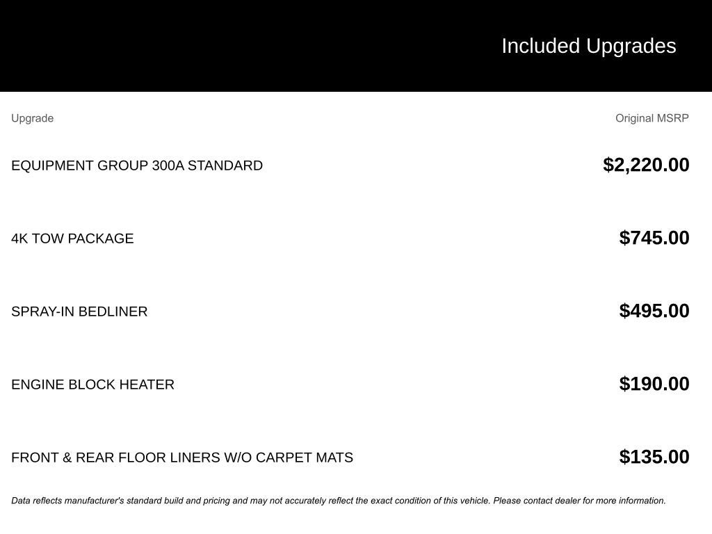 Dealer Installed Accessories do not include any additional optional accessories customer may choose to add to vehicle.