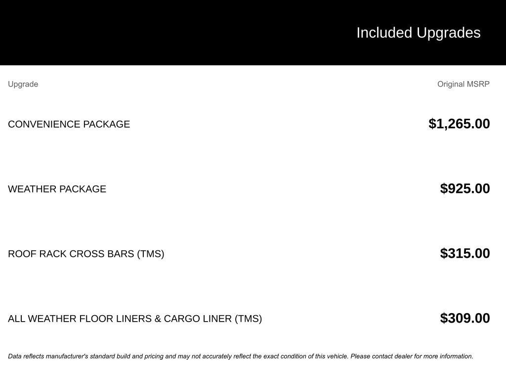 - Rear seatback upholstery: Carpet rear seatback upholstery