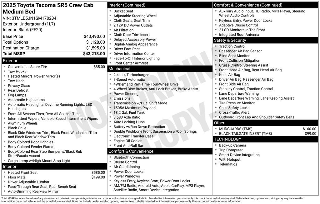 2025 Toyota Tacoma SR5 Underground 4WD 2.4L 4-Cylinder 8-Speed Automatic
